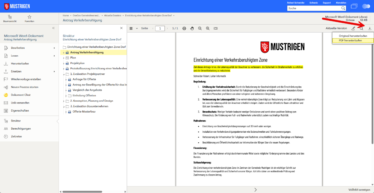 Über das Icon „Herunterladen“, haben Sie die Möglichkeit das Dokument im Originalformat oder als PDF herunterzuladen.