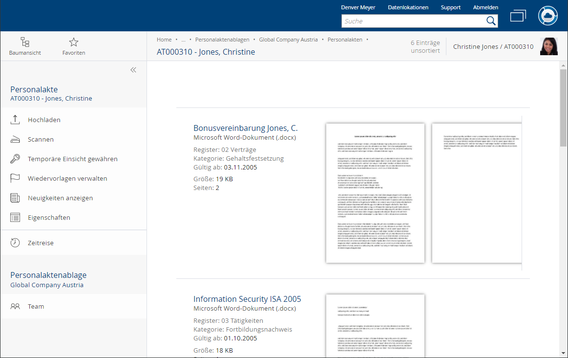 Um Dokumente zu Personalakten zu registrieren, gehen Sie folgendermaßen vor: