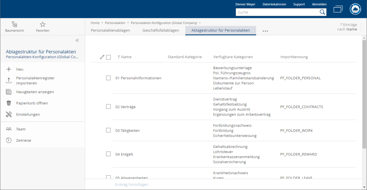 - Navigieren Sie in der Personalakten-Konfiguration in den Bereich Ablagestruktur für Personalakten.