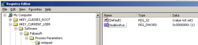 For any of these executables, no registry entry is needed to disallow its execution. If there is an explicit entry, execution can be allowed by setting the named value DisallowRun to the value “0”.